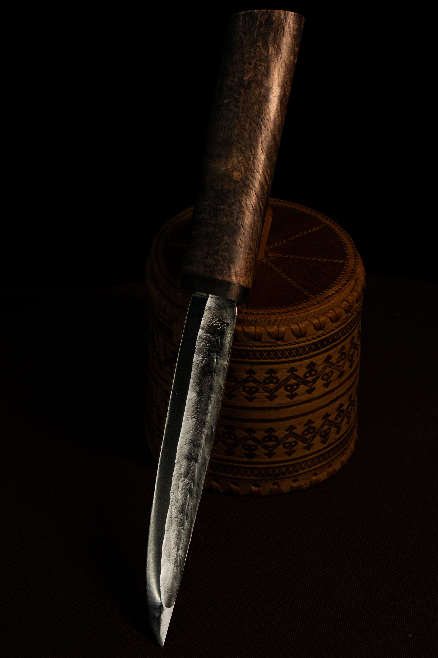 Сдержанный, тёмный, собранный. «Хара» в якутской традиции — это чёрный цвет, символ стойкости, внутреннего равновесия и скрытой силы. Такой нож не подводит — он выдерживает и время, и нагрузку. Этот нож не требует внимания — он создан для дела