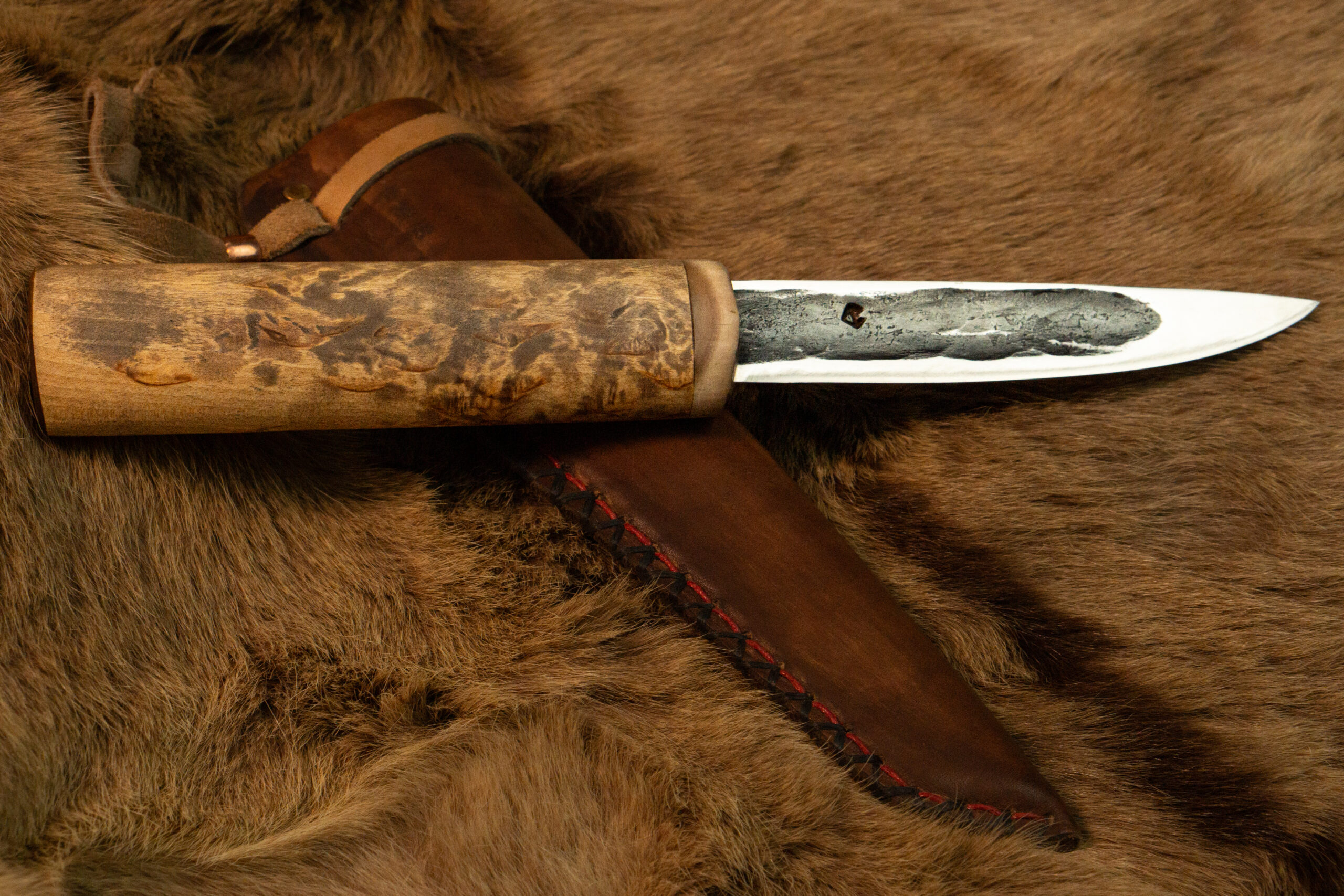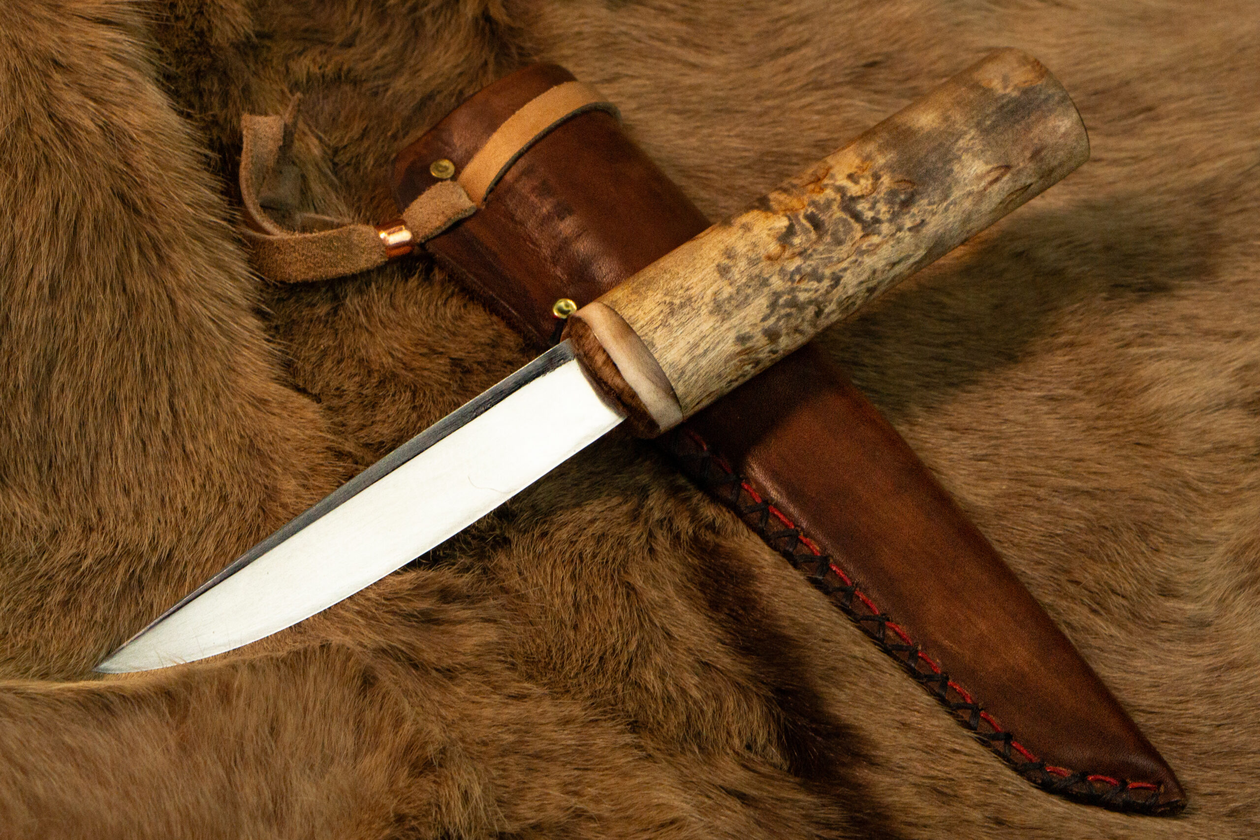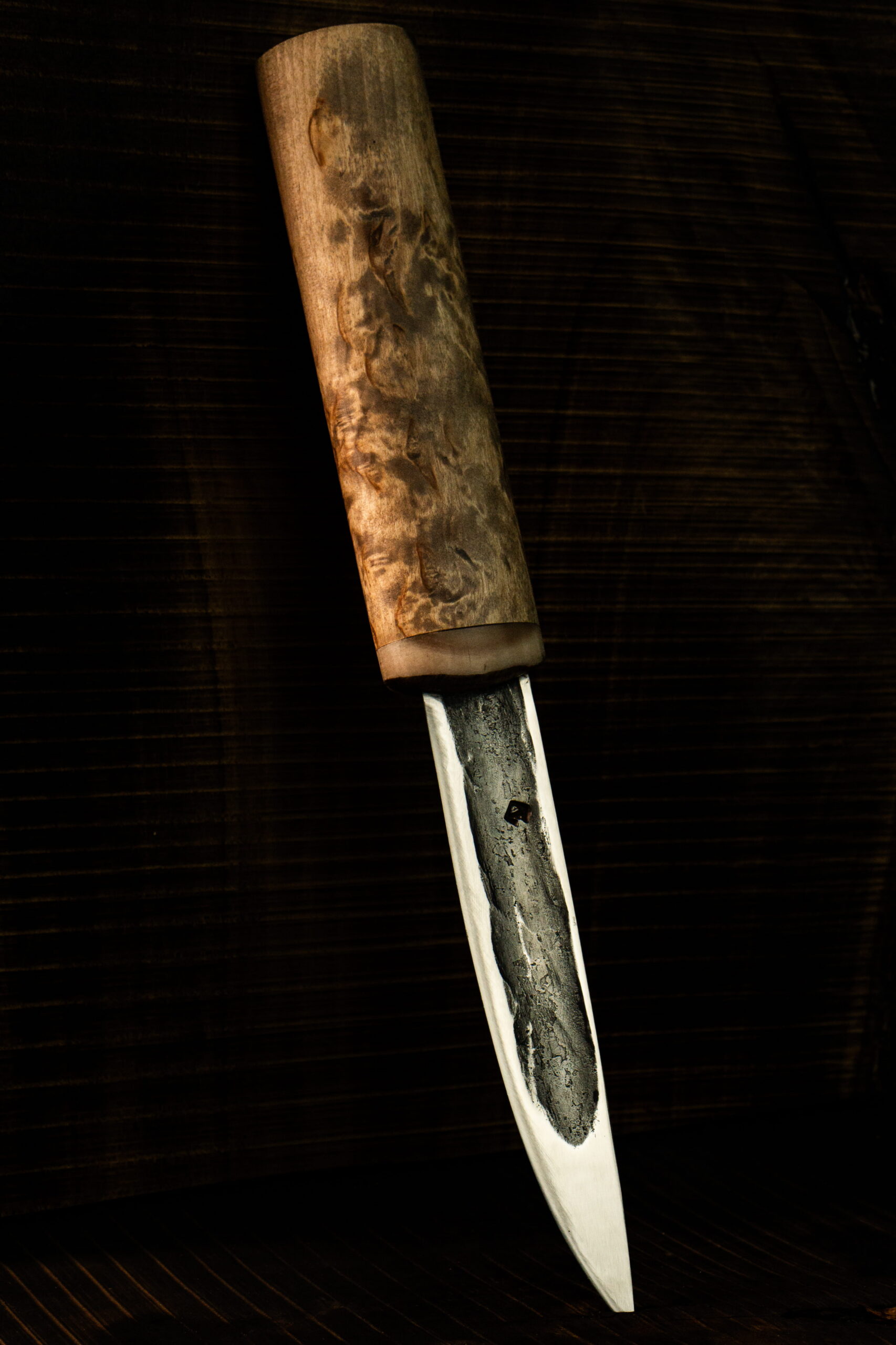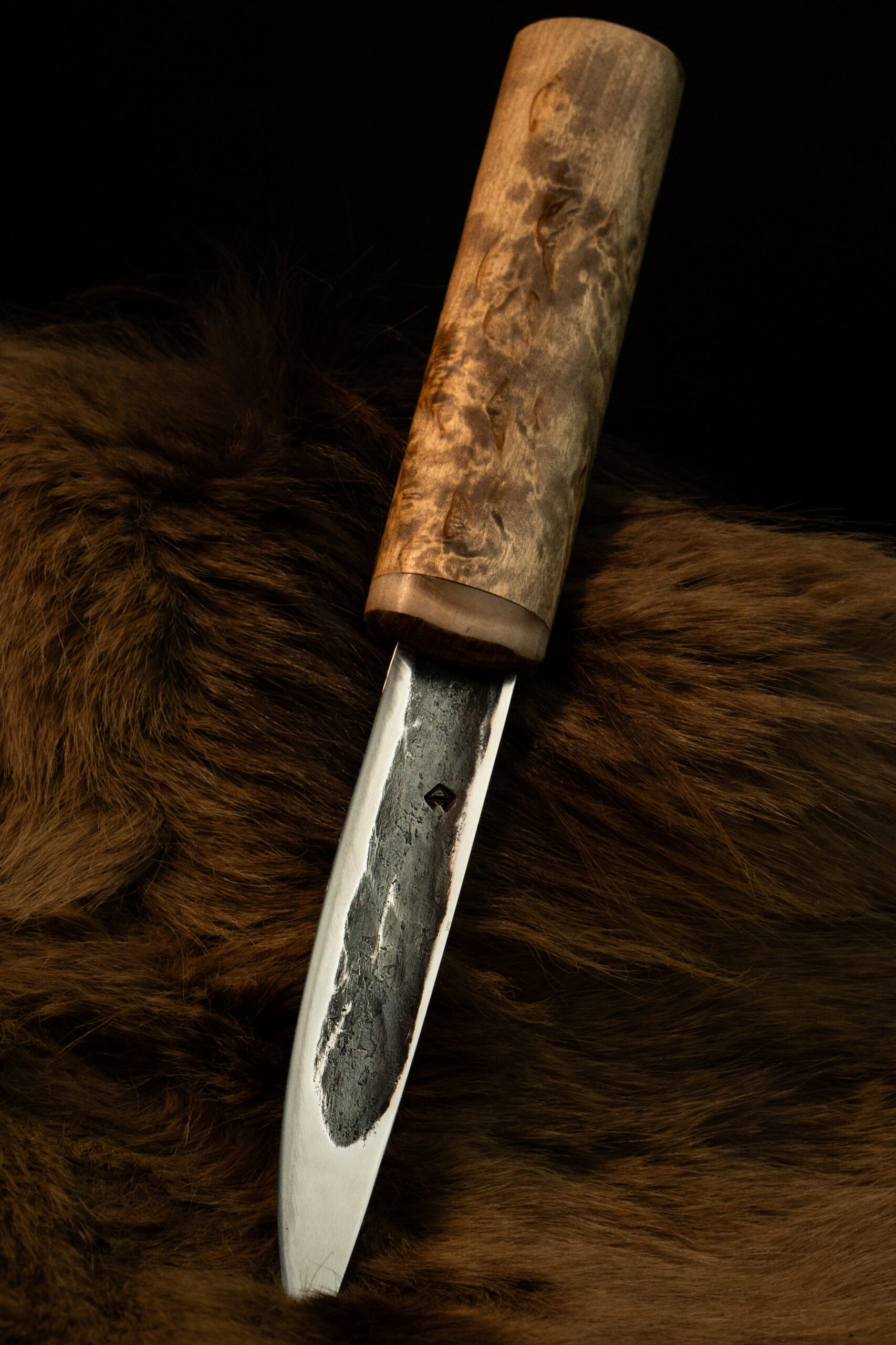 Тайга — дом якутского народа, и нож всегда был первым инструментом, который берут с собой в лес. «Дух тайги» продолжает эту традицию. Клинок из стали Х12МФ с характерным долом легко справляется с зелёным деревом и мёрзлым мясом, а рукоять из карельской берёзы обеспечивает уверенный хват в долгие часы работы на стоянке. Больстер из рога горного барана придаёт ножу прочность и неповторимый облик.