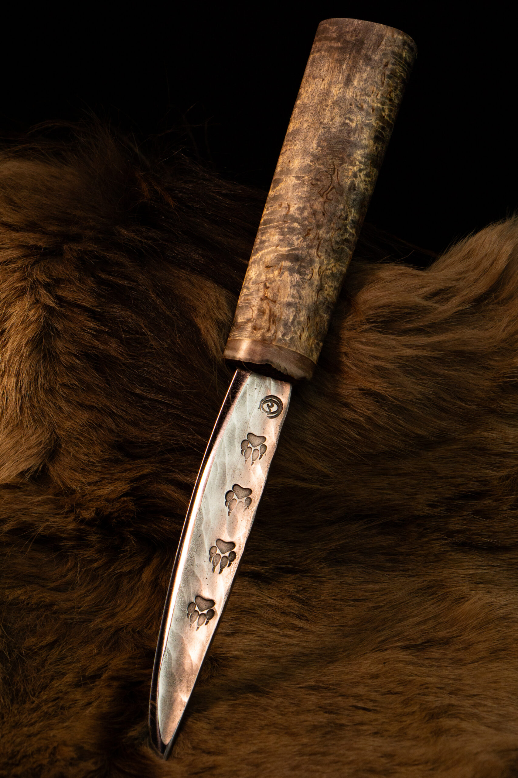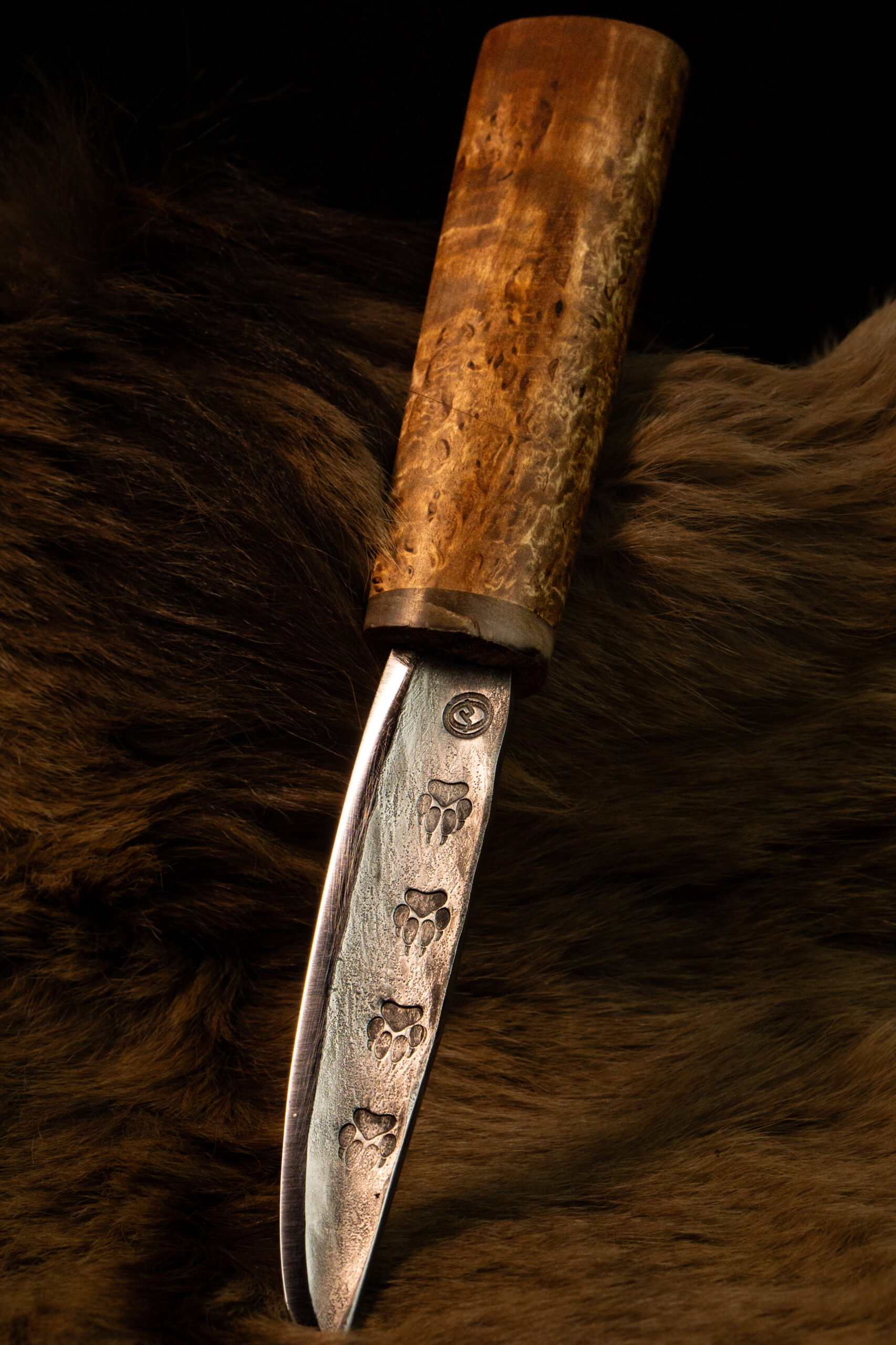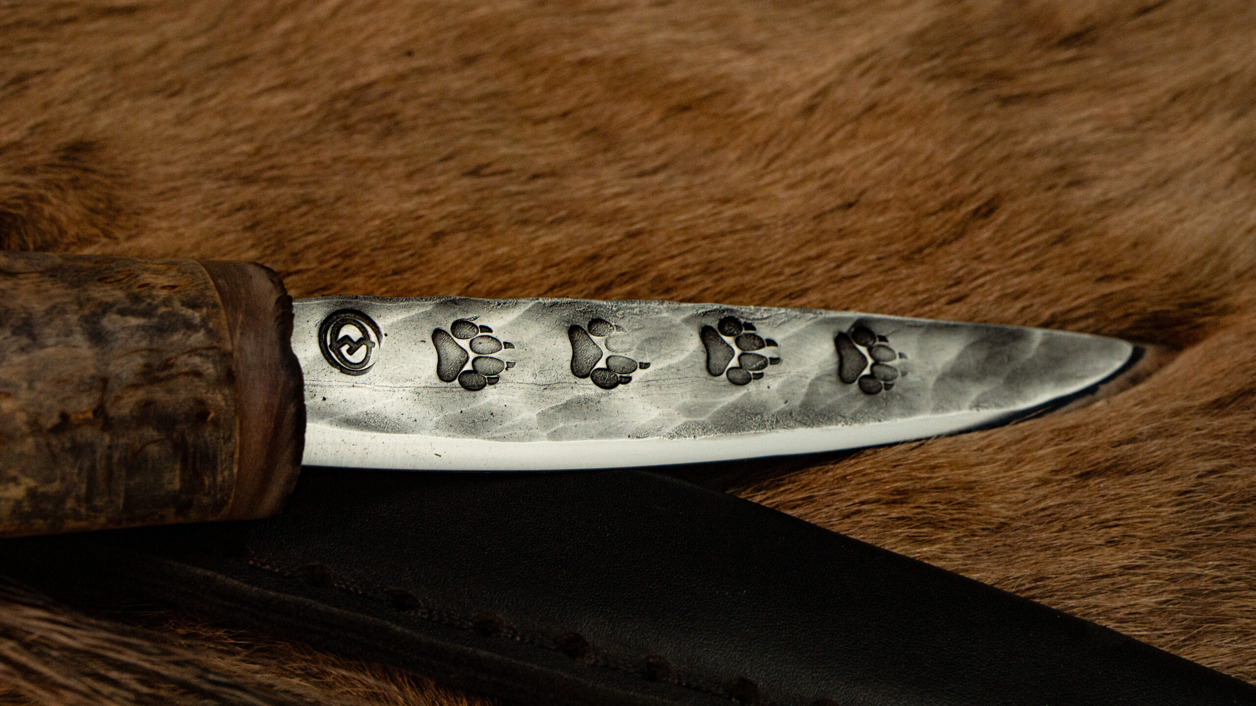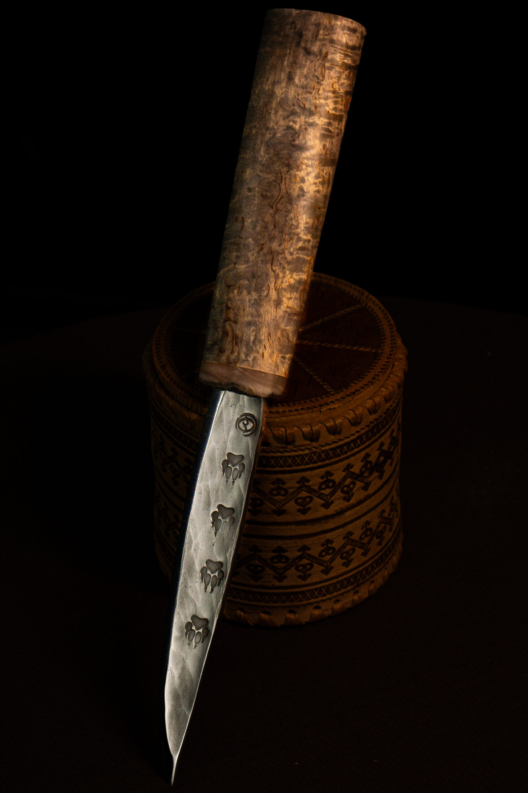 • Клинок — нержавеющая сталь 40Х13 с кованым узором следами волка